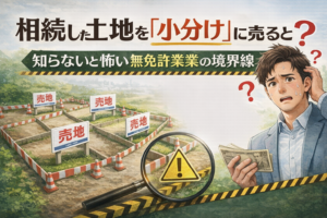 「親から譲り受けた複数の土地、1つずつ売れば高く売れるはず」 「相続した広い土地を、分筆して小分けにして売ろう」 そう考えている方は、少し立ち止まってください。やり方によっては、その売却が宅建業法上の「無免許営業」とみな […]